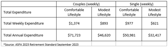 Generally speaking, there are guidelines that provide an estimate of how much money is needed to retire comfortably. The Association of Superannuation Funds of Australia (ASFA) estimates that Australians aged over 67 who own their own home outright and are in relatively good health, will need the following amount of money each week and year in retirement: